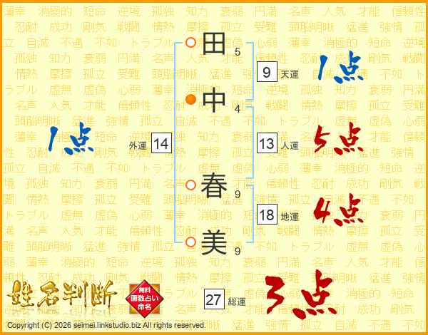 田中 春美さんの名前の鑑定結果は 姓名判断ネット